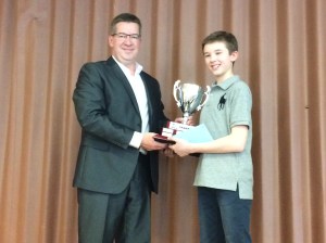 An assembly was held on Thursday afternoon to congratulate one of our students, who won the 2017 Telegram Regional Spelling Bee. Representatives from The Telegram were on hand to present Vincent Burton with his trophy, and to wish him well as he heads off to Washington, D.C., to compete in the Scripps National Spelling Bee.