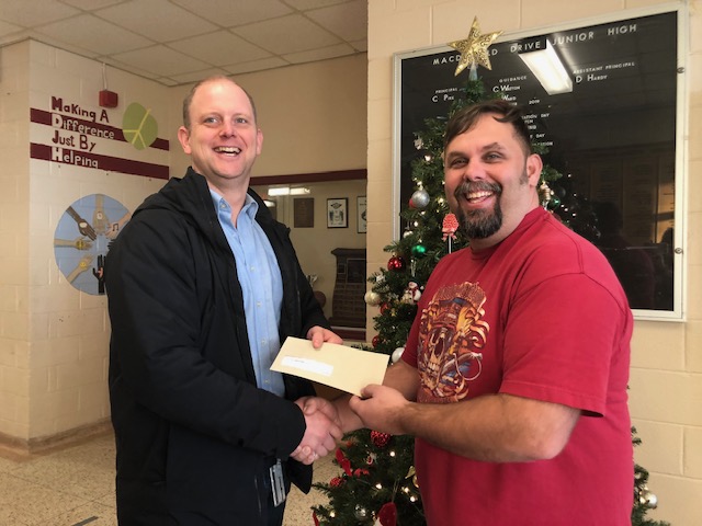 Here, Mr. Porter presents Mr. Noseworthy with a cheque for $6696.00! Thank you to everyone who participated!