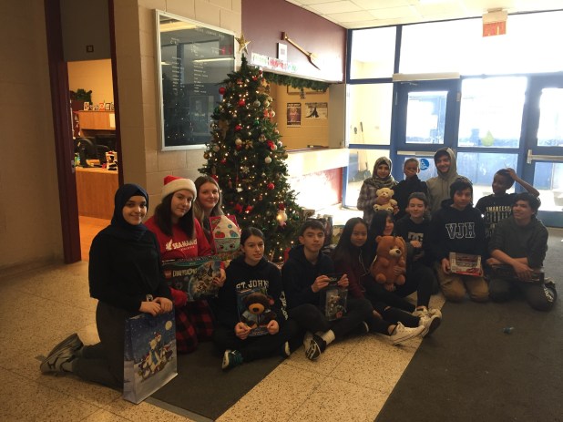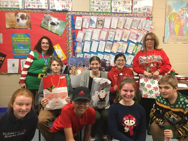 Every December, the homerooms of MDJH take part in the Adopt-A-Senior program. Each homeroom raises money to buy a gift for a senior at St. Pat’s Mercy Home. The gifts are delivered by the members of the Student Council (pictured here, along with Mme. Sauve and Mme. Quann). A big “Thank You!” to everyone who participated!