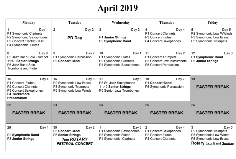 There is a Professional Development Day scheduled for Tuesday, April 2nd. There will be no classes for students on that day.