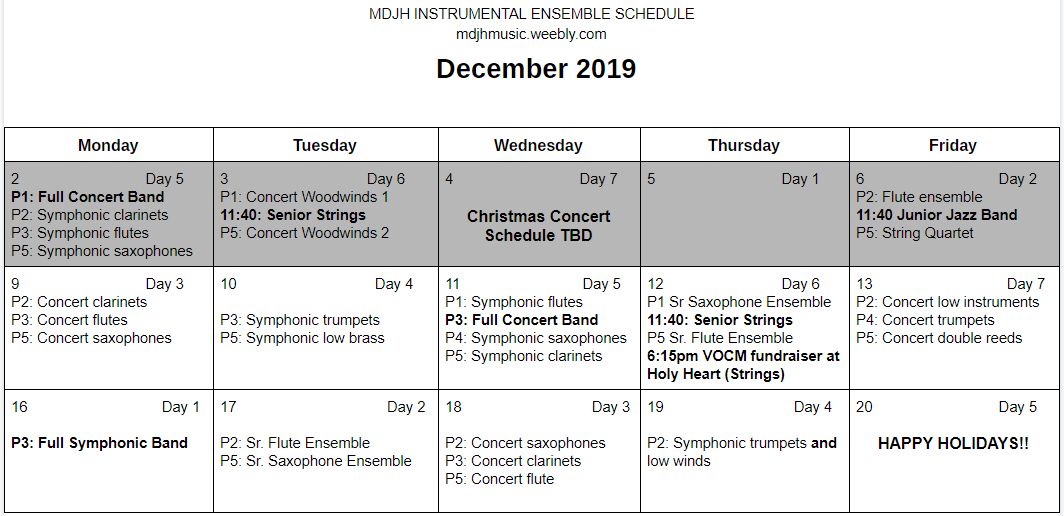 December Band Schedule Share this: Click to print (Opens in new window) Print Click to email a link to a friend (Opens in new window) Email