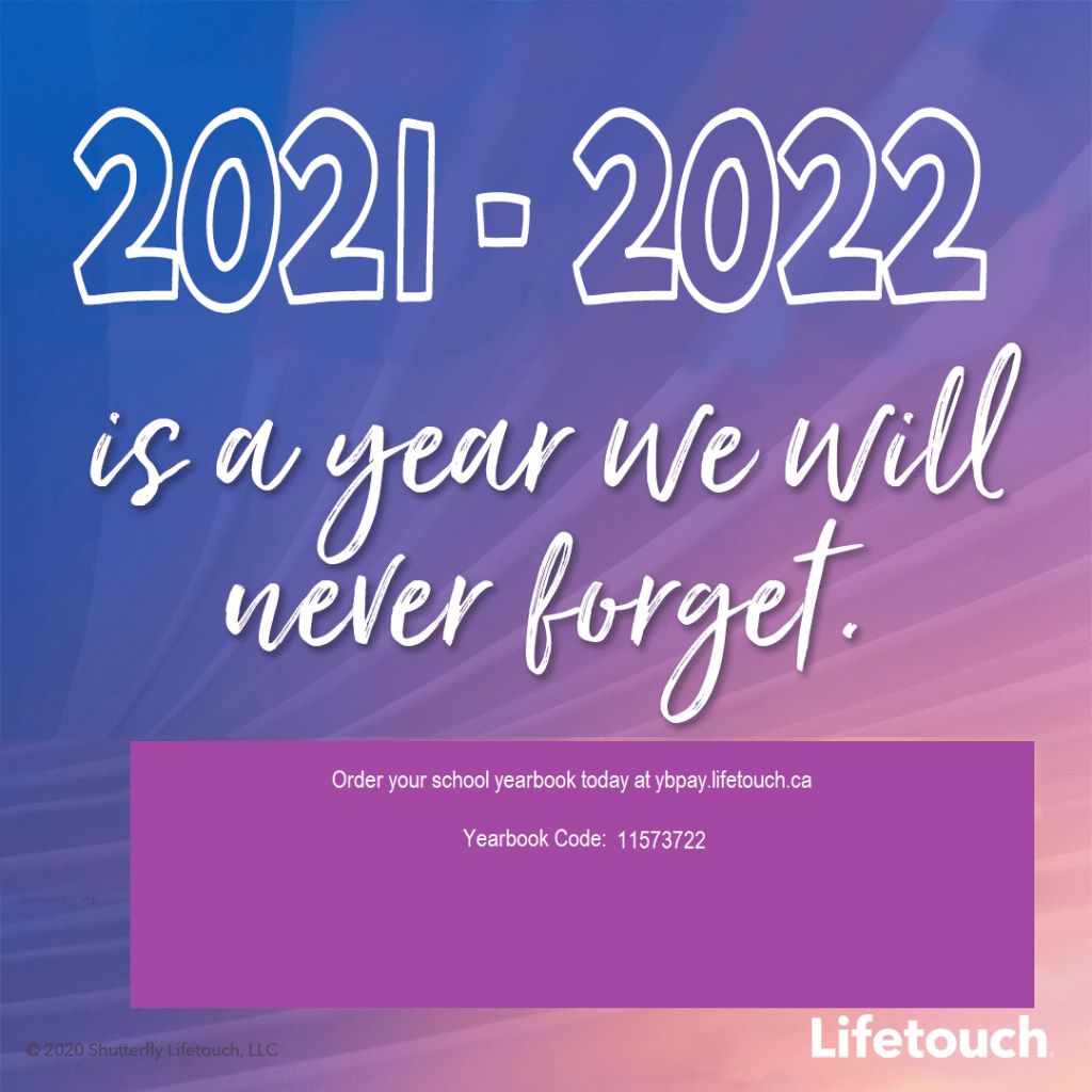 Every year, MDJH celebrates the students with a yearbook that is put together by the student yearbook committee that is headed up by Mme. Quann. If you are interested in ordering the 2021-2022 yearbook, you can do that on-line. Go to ybpay.lifetouch.ca and use the code 11573722.