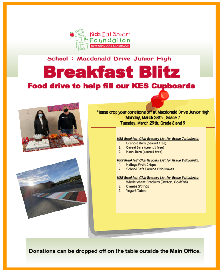 The Kids Eat Smart Breakfast Blitz is coming next week! You can donate either food items (see the chart below), or make an on-line donation at https://www.kidseatsmart.ca/breakfast-blitz-2022/. Please indicate MDJH in the donation field if you choose this option.