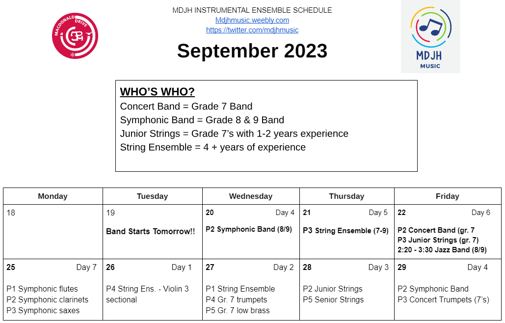 September Band Schedule Share this: Click to print (Opens in new window) Print Click to email a link to a friend (Opens in new window) Email