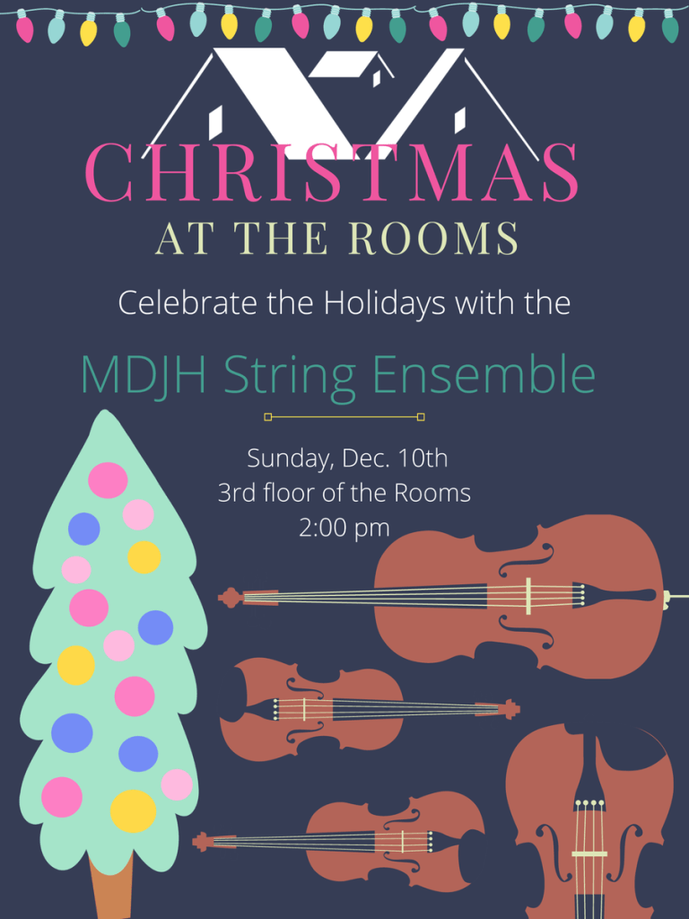 Christmas at The Rooms – MDJH String Ensemble The String Ensemble has a special performance at the Rooms onĀ Sunday, December 10, from 2:00-3:00pm. Please come and enjoy some holiday tunes in a beautiful and festive setting. Share this: Click to print (Opens in new window) Print Click to email a link to a friend (Opens in new window) Email