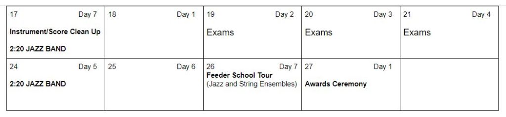 - MDJH works on a 7 days cycle with 5 periods per day.